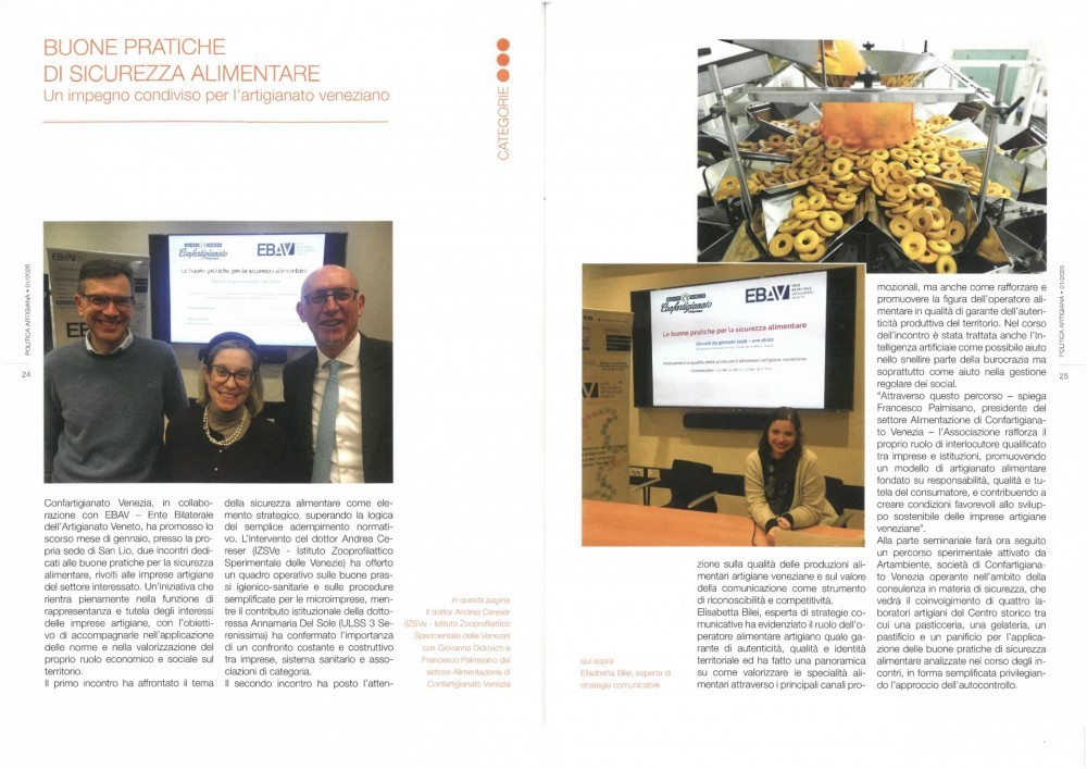 Nel corso dell’incontro è stata trattata anche l’Intelligenza artificiale come possibile aiuto nello snellire parte della burocrazia ma soprattutto come aiuto nella gestione regolare dei social. “Attraverso questo percorso – spiega Francesco Palmisano, presidente del settore Alimentazione di Confartigianato Venezia – l’Associazione rafforza il proprio ruolo di interlocutore qualificato tra imprese e istituzioni, promuovendo un modello di artigianato alimentare fondato su responsabilità, qualità e tutela del consumatore, e contribuendo a creare condizioni favorevoli allo sviluppo sostenibile delle imprese artigiane veneziane”. Alla parte seminariale farà ora seguito un percorso sperimentale attivato da Artambiente, società di Confartigianato Venezia operante nell’ambito della consulenza in materia di sicurezza, che vedrà il coinvolgimento di quattro laboratori artigiani del Centro storico tra cui una pasticceria, una gelateria, un pastificio e un panificio per l’applicazione delle buone pratiche di sicurezza alimentare analizzate nel corso degli incontri, in forma semplificata privilegiando l’approccio dell’autocontrollo.