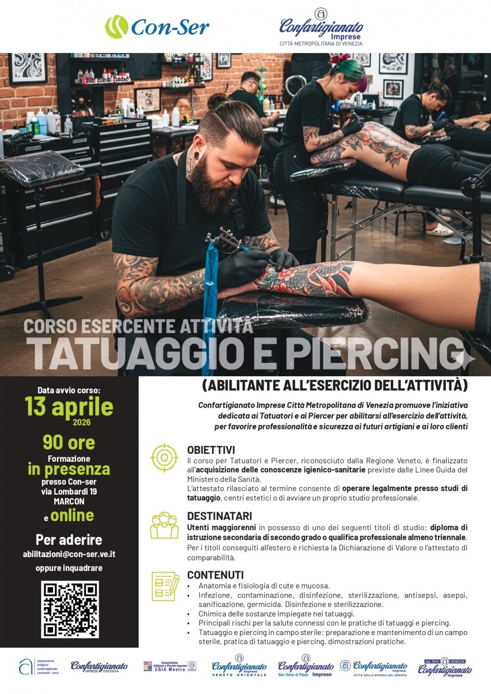 Corso promosso da Con- Ser Srl per l’Attività Tatuaggio e Piercing (abilitante alla attività riconosciuto dalla Regione Veneto)