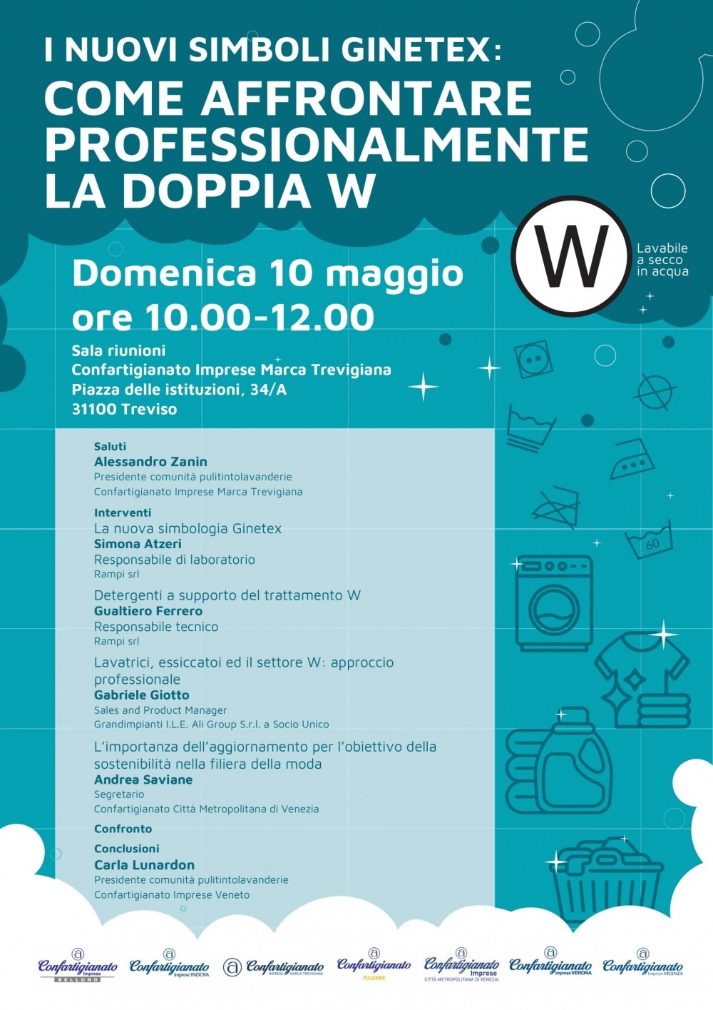 Nell'ambito del programma di aggiornamento pluriennale della categoria Pulitintolavanderie avviato due anni fa, abbiamo il piacere di invitare le imprenditrici e gli imprenditiori del settore della città Metropolitana di Venezia all'incontro