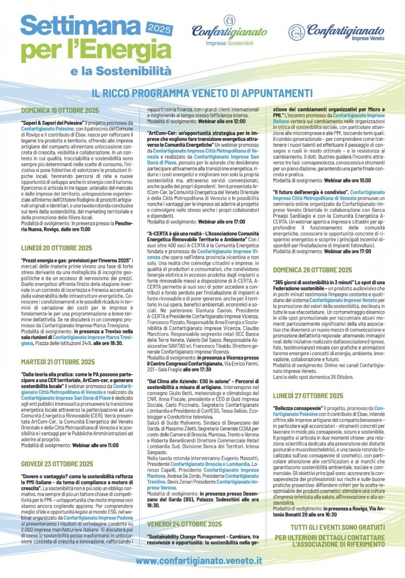 Tre gli appuntamenti "targati" Confartigianato Città Metropolitana di Venezia.