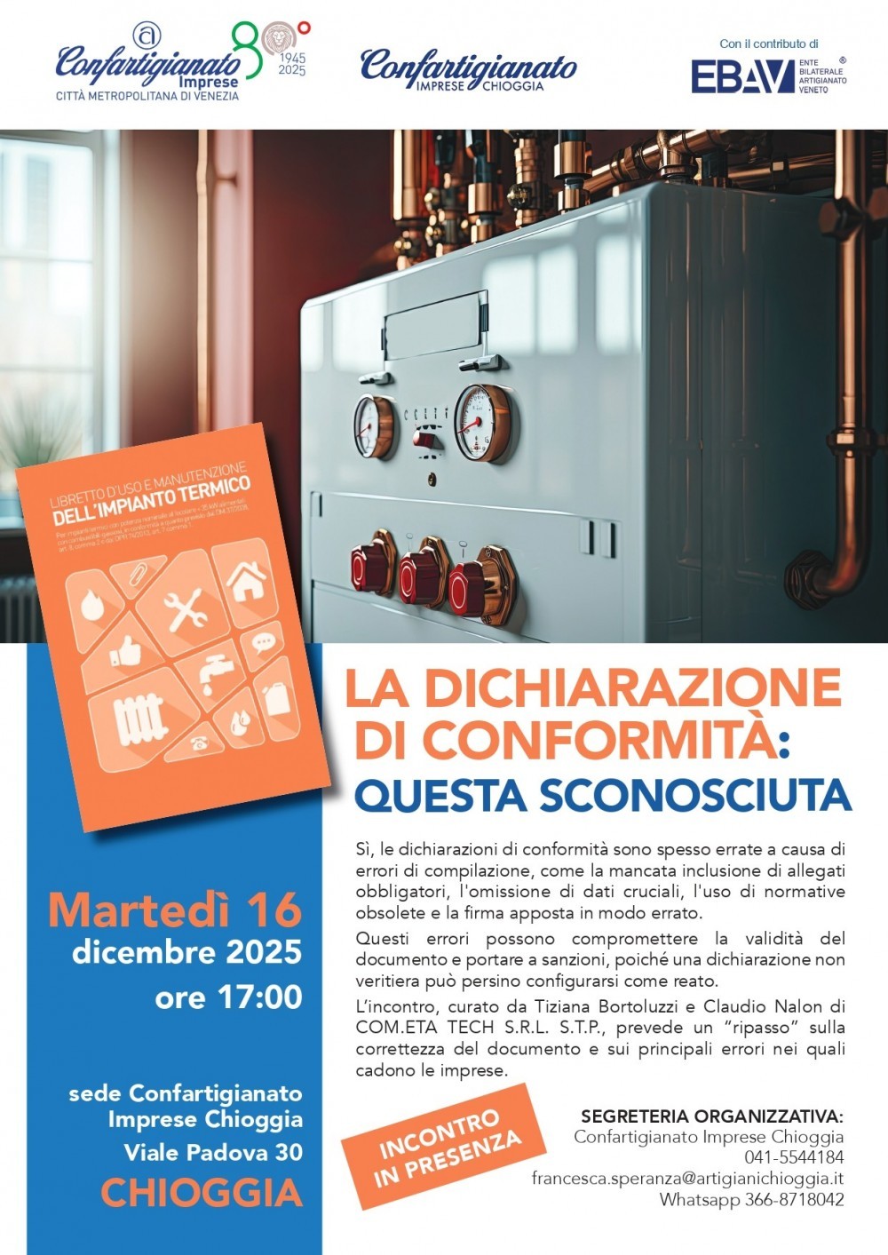 L’incontro, curato da Tiziana Bortoluzzi e Claudio Nalon di COM.ETA TECH S.R.L. S.T.P., prevede un “ripasso” sulla correttezza del documento e sui principali errori nei quali cadono le imprese.
